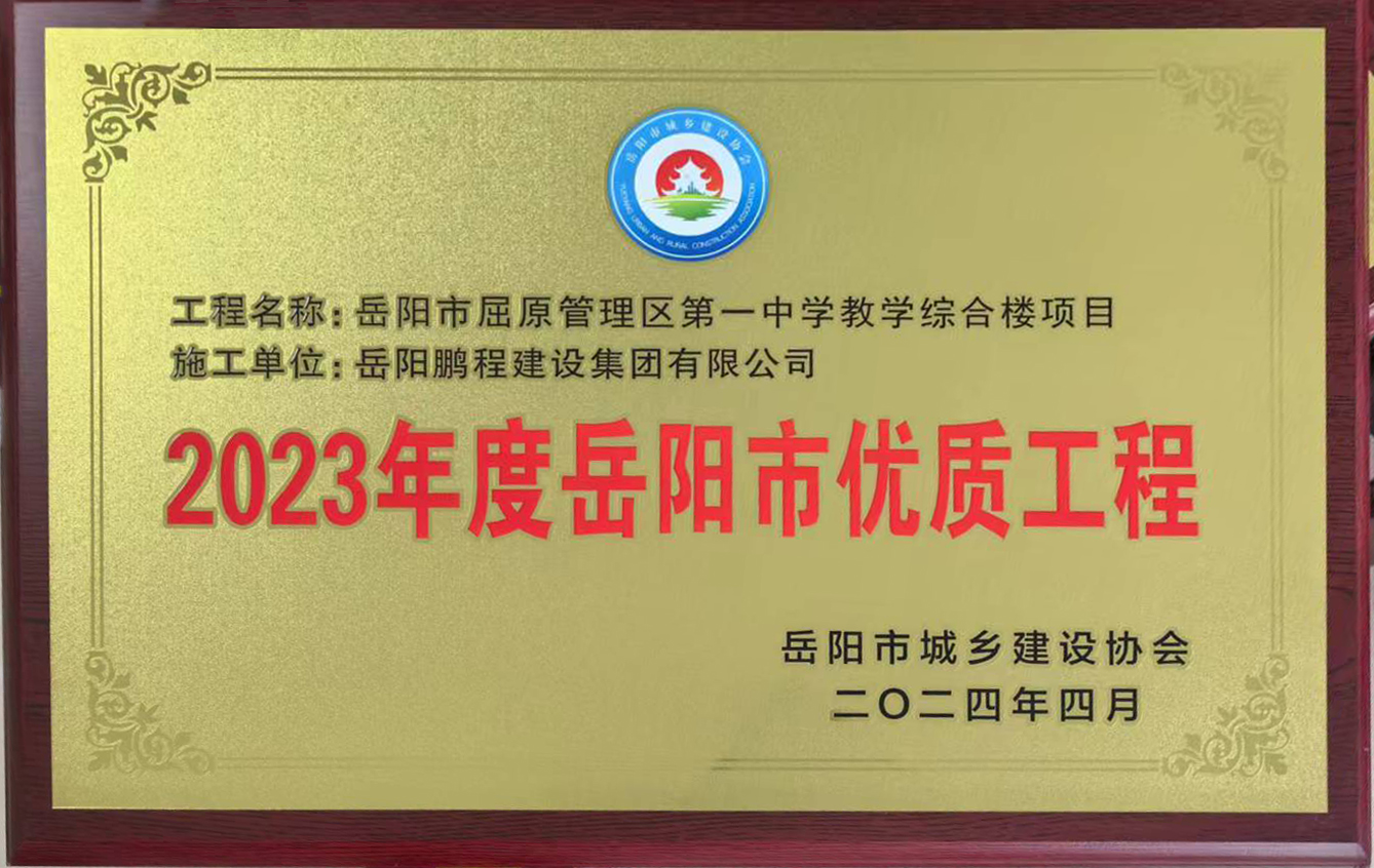 2023年度岳陽市優(yōu)質(zhì)工程--岳陽市屈原管理區(qū)第一中學教學樓綜合樓項目